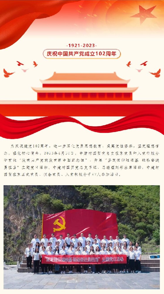 中建材国贸党总支开展“党旗飘扬 奋斗有我”主题党日活动为深入学习“坚决听党话,坚定跟党走、坚持为人民”的“红色背篓精神”,增强公司党支部建设和党员干部的凝聚力,活跃党内活动,提高党员素质和水平,发挥党员先锋模范作用,激发全体党员爱党爱国和干事创业热情,2022年8月5日,中建材国贸党总支赴北京市房山区红色背2022-08-05